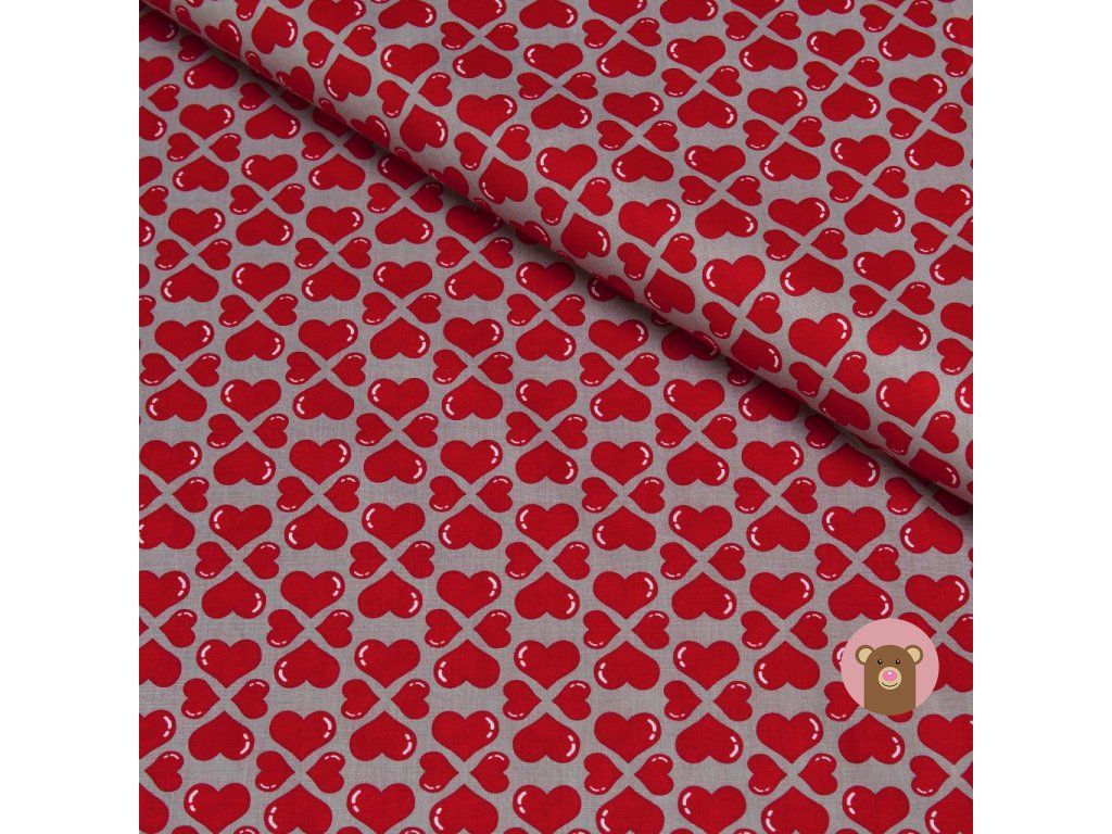Bavlněná látka/plátno - potisk - srdíčka na šedé